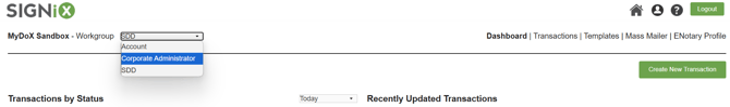 If you do have this menu, please select the "Corporate Administrator" group to proceed.